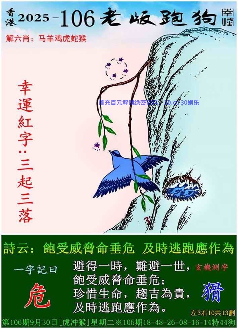 106期:黑白中特╠白肖白肖╣开:猪43准